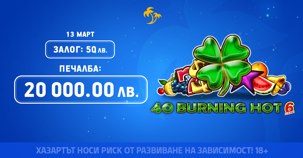 🎰 Този път късметлийското заглавие се оказа 40 Burning Hot 6 Reels от EGT Digital!