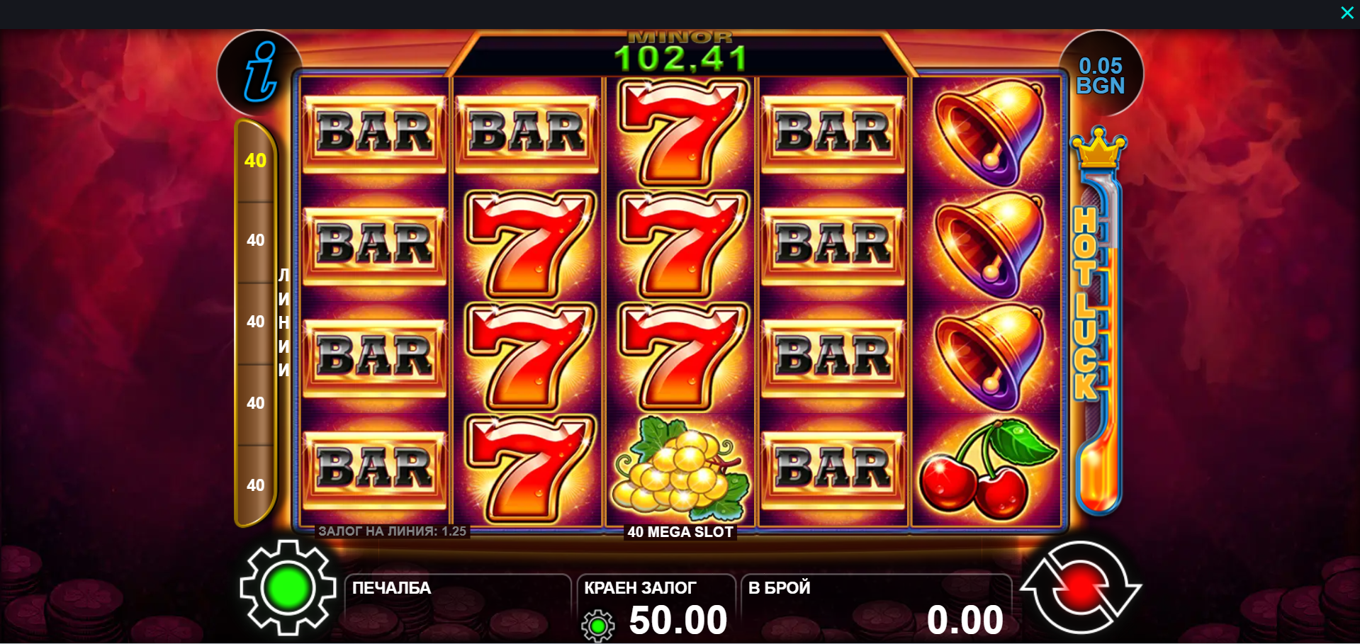 🎰 Печалбата падна с едно от най-разпознаваемите заглавия на CT Interactive – 40 Mega Slot! Играта предлага вълнуващ дизайн с класически символи от света на слот забавленията. А със своите 40 линии на изплащане и специални жокер и скатер символи, 40 Mega Slot предоставя разнообразни възможности за печалба, и разбира се, много забавление и уникално преживяване!