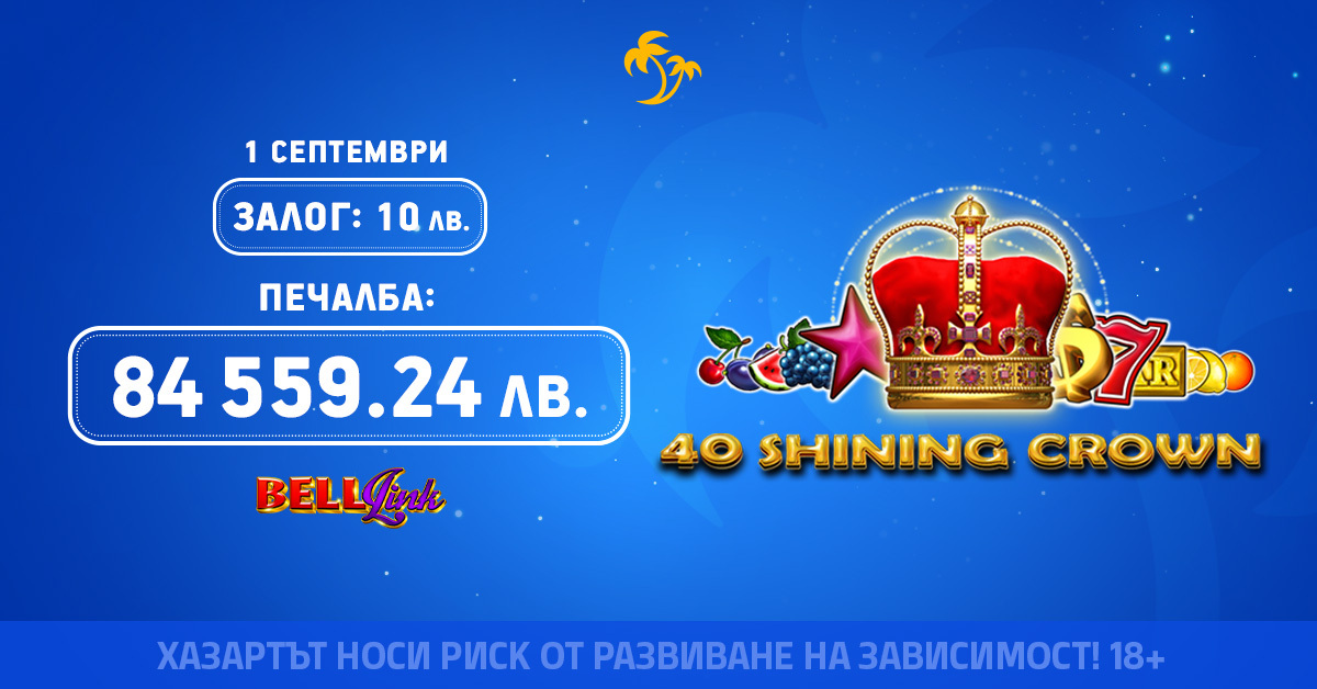 🎰 Печалбата дойде от играта 40 Shining Crown Bell Link на EGT Digital, като беше свалено най-високото Grand ниво на Bell Link Jackpot! Истинско златно попадение под Палмата!