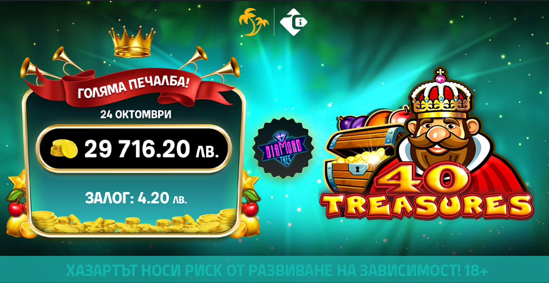 🎰 Печелившата игра беше 40 Treasures Diamond Tree JP – истинско съкровище от CT Interactive, което комбинира класическо приключение с иновативния Diamond Tree Jackpot! 💎 Именно благодарение на този ексклузивен джакпот нашият победител успя да спечели най-високото ниво – MEGA! 💥