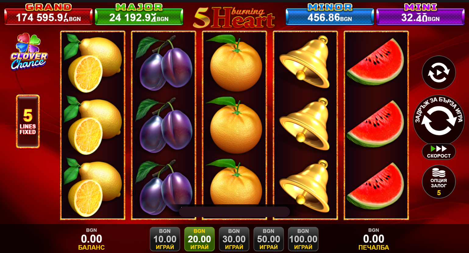 🎰 Късметлийското завъртане дойде с играта 5 Burning Heart от EGT Digital.