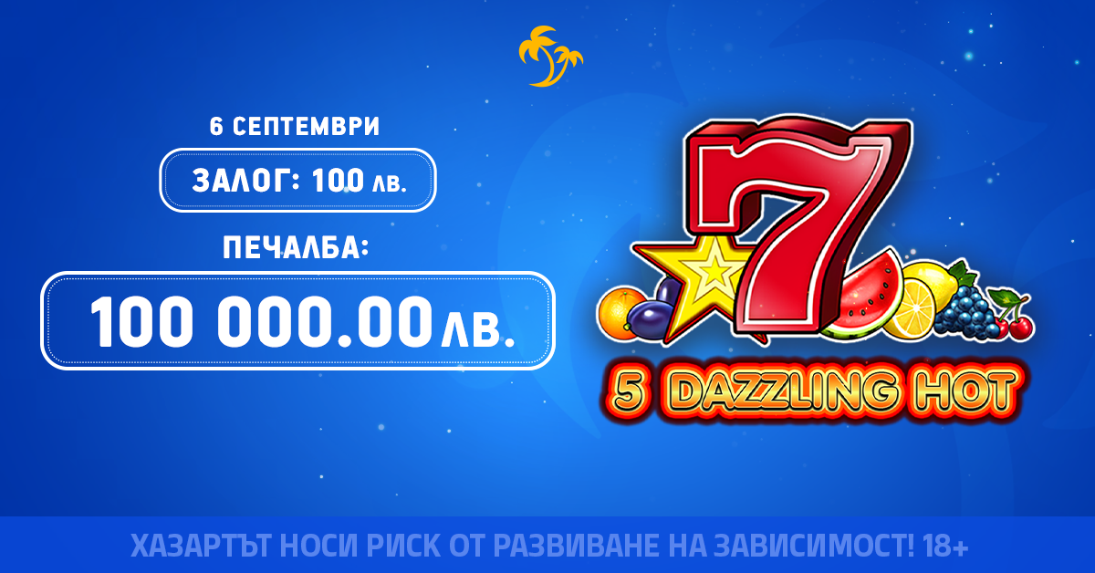 🌴 На 6 септември в онлайн казиното на Palms Bet един щастливец превърна залог от 100 лв. в невероятна печалба от 100 000 лв.! 💸