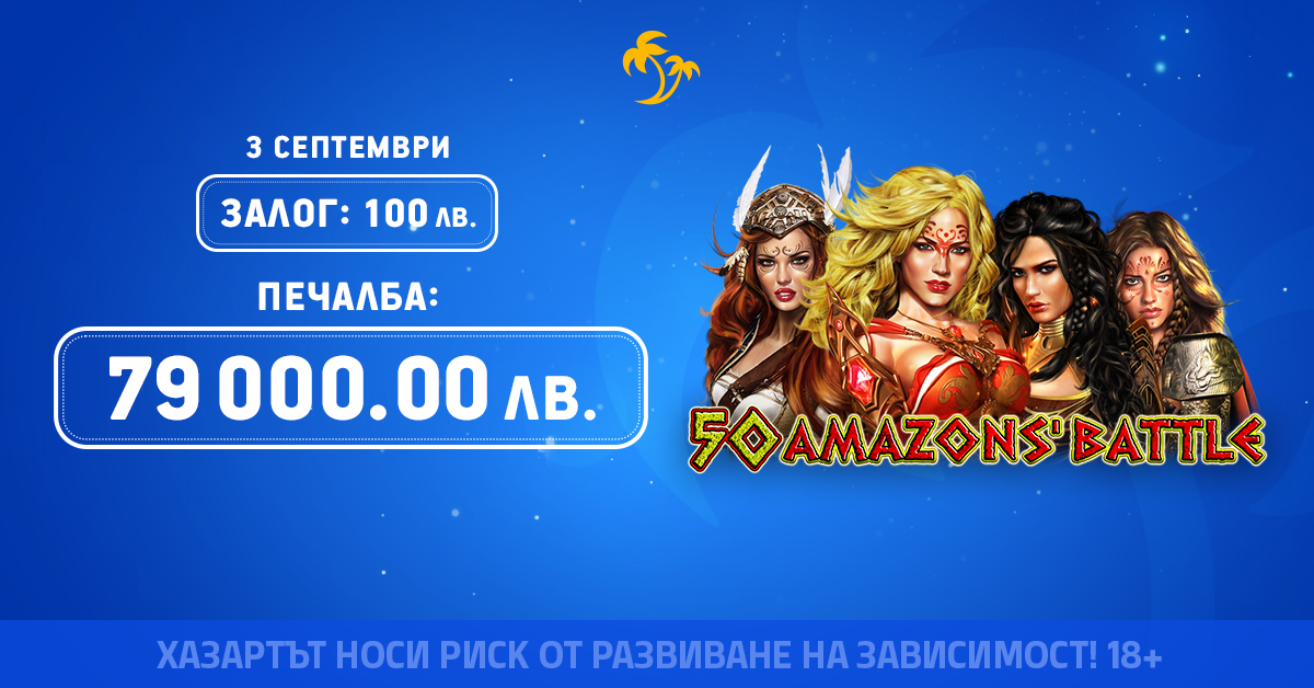 📢 На 3 септември онлайн казиното на Palms Bet отново стана арена на впечатляващи печалби! Един от нашите играчи се награди със сериозен успех на играта 50 Amazons Battle.