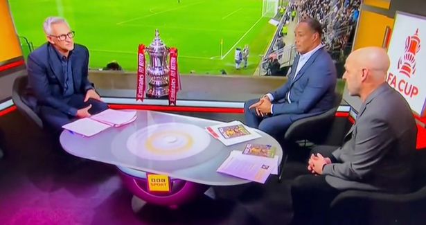 Докато Гари Линекер и Алън Шиърър обсъждаха двата тима преди началото на двубоя, предаването на живо бе „допълнено“ от мощни пъшкания, все едно извадени от филм за възрастни.