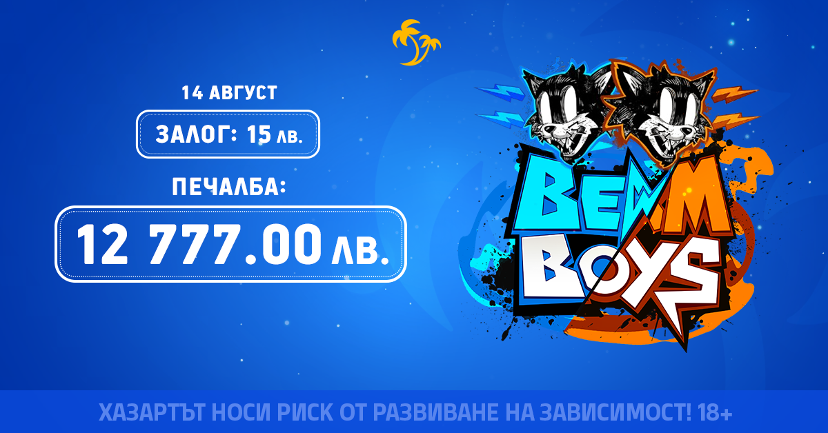 🎰 Печелившото завъртане дойде с цветната и динамична слот игра Beam Boys, където забавлението среща големите множители, а всяко завъртане крие шанс за сериозна награда!