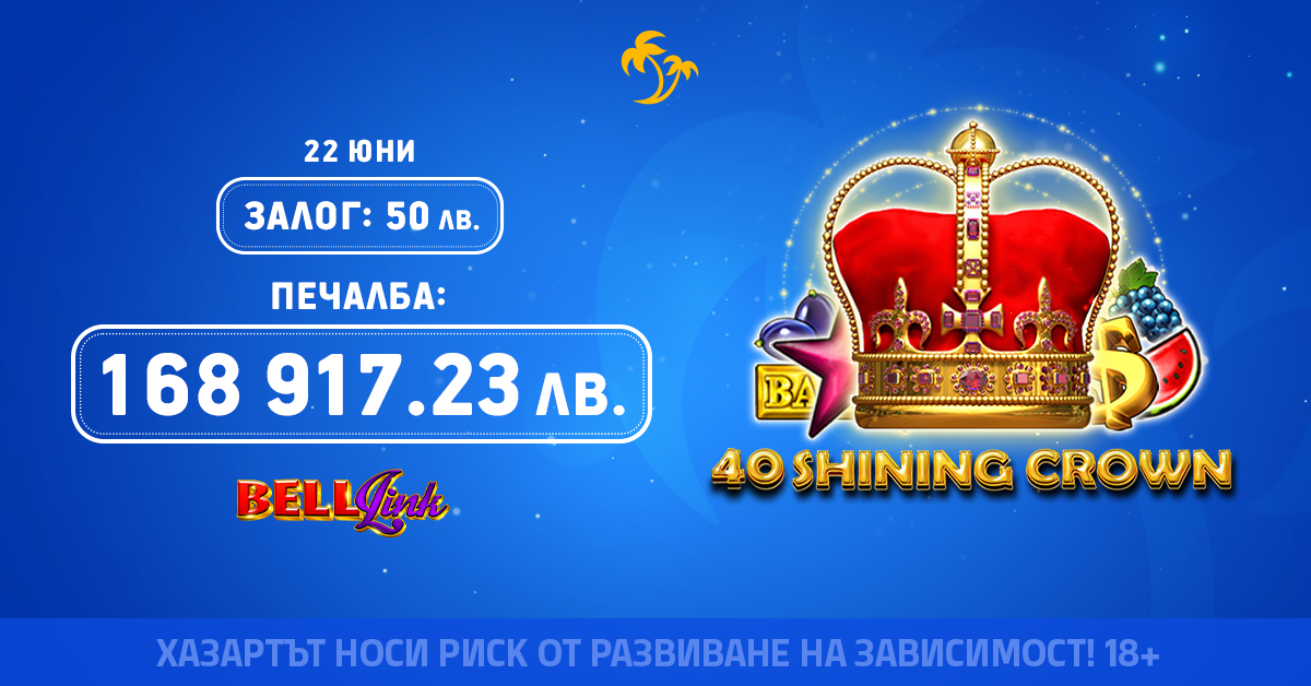 🌴 На 22 юни в онлайн казиното на Palms Bet беше ударена грандиозна печалба от цели 168 917.23 лв. след залог от 50 лв., благодарение на най-високото Grand ниво на Bell Link Jackpot! 💸