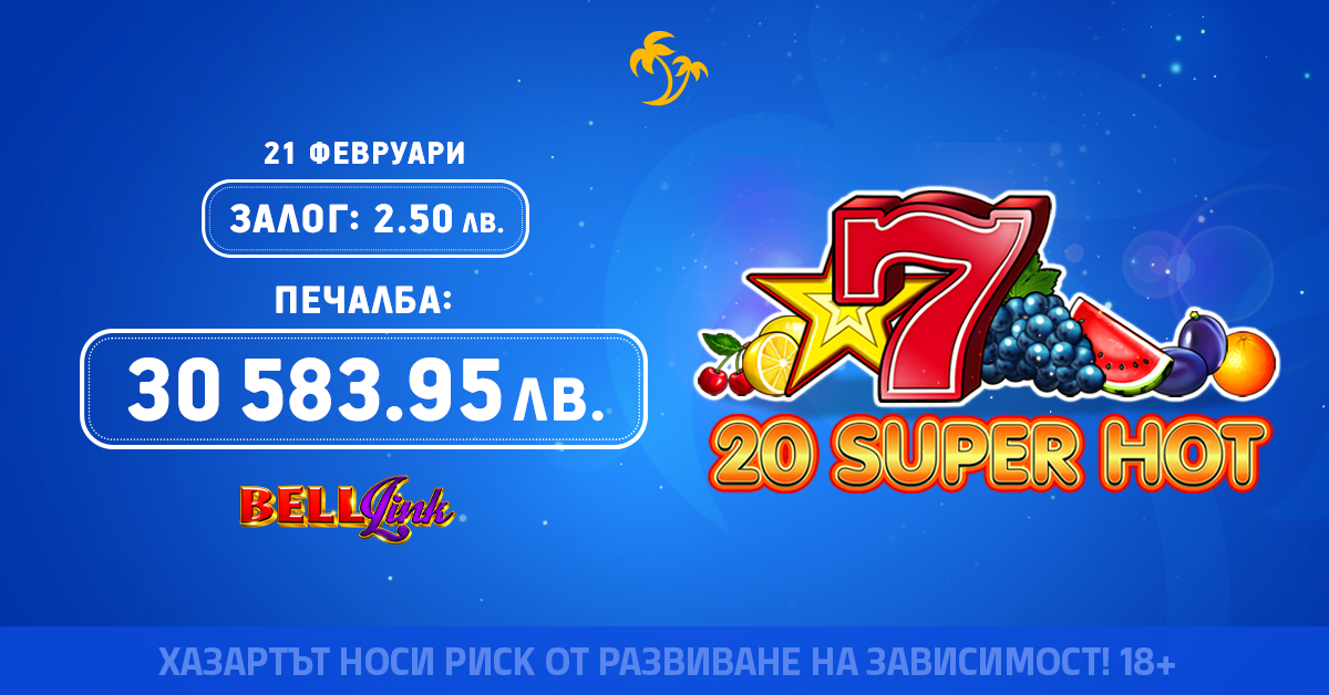 🎰 Джакпотът падна с играта 20 Super Hot Bell Link от доставчика EGT Digital. Емблематичното заглавие носи със себе си класически дизайн и най-различни възможности за печалби, благодарение на своите 20 фиксирани линии на изплащане, специални символи с множители, възможности за удвояване на печалби, както и специалният Bell Link Jackpot от 4 нива (Mini, Minor, Major и Grand).