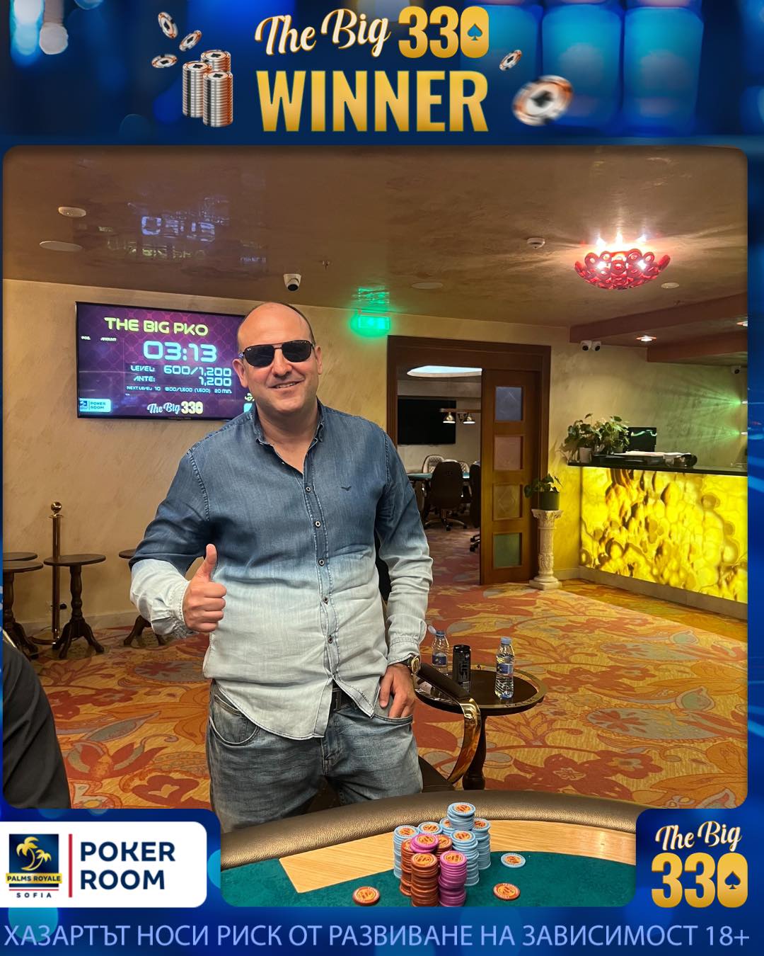 Поздравления за Явор Тутев за победата в турнира The Big 330, който се проведе в покер залата на Palms Royale Sofia от 12 до 17 юни!