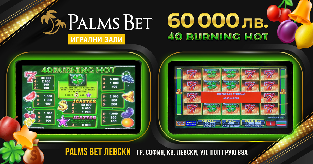 Тази печалба допълва нарастващия списък със спечелили големи награди и джакпоти в Palms Bet, което ги прави една от най-търсените вериги за любителите на игрите в България. Приятелско обслужване, приветлива атмосфера и възможност за игра на най-добрите машини са основните характеристики на Palms Bet игрални зали.