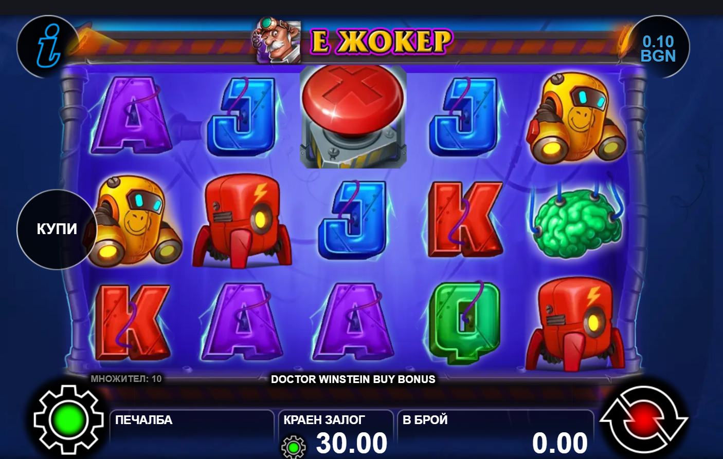 🎰 Doctor Winstein Buy Bonus е едно от най-емблематичните заглавия на CT Interactive. Играта предлага най-различни възможности за печалба, благодарение на уникални Wild и Scatter символи, както и вълнуващата си клъстерна каскадна механика, при която сумите могат да се трупат без спирка! И разбира се – специалният Buy Bonus Jackpot! А с модерния си дизайн, играта затвърждава мястото си на фаворит сред любителите на слот забавленията! 🥸