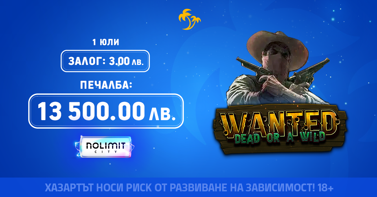 👉 Искаш и ти да се потопиш в света на тръпката и забавлението? Wanted Dead or a Wild, както и още много топ предложения, те очакват на palmsbet.com! Там ще откриеш и специални оферти, които да направят играта ти още по-вълнуваща!