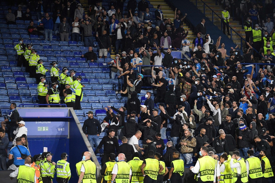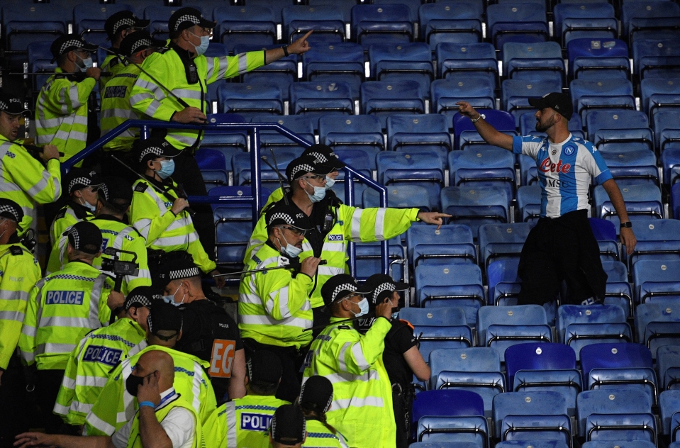 Фенове на Наполи влязоха в конфликт с полицията по време на мача от първи кръг на Лига Европа срещу Лестър Сити.