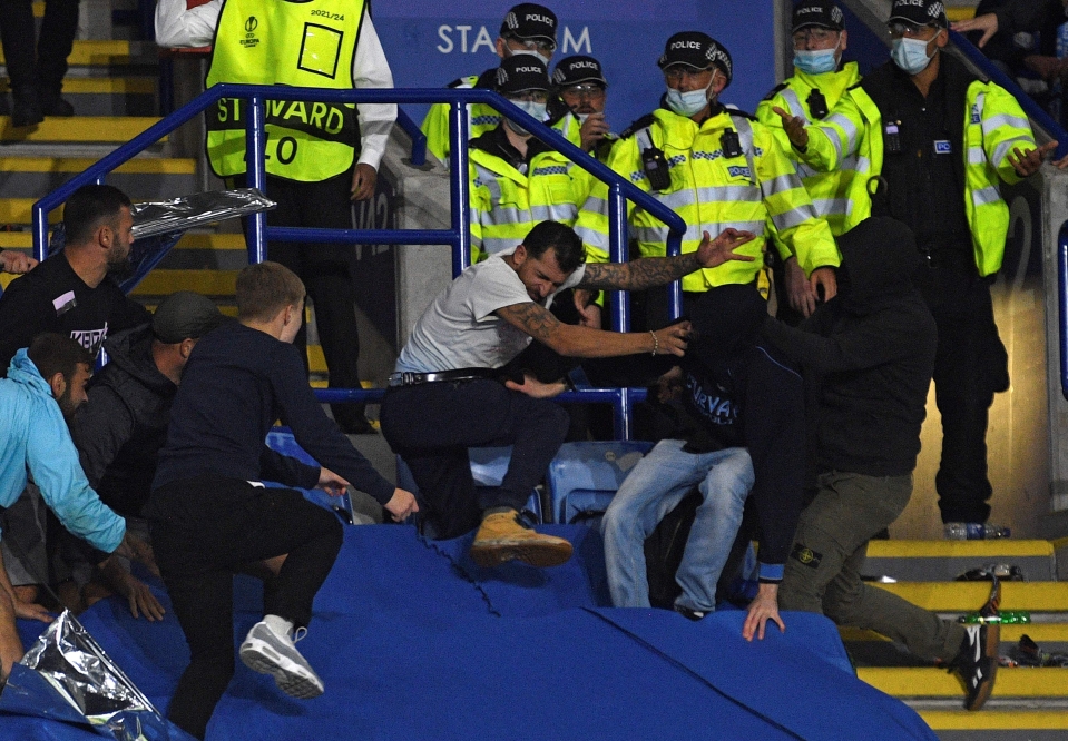 За да успокоят феновете на италианския клуб, на стадиона се появиха полицаи и стюарди. Те също така направиха стена между привържениците на двата отбора.