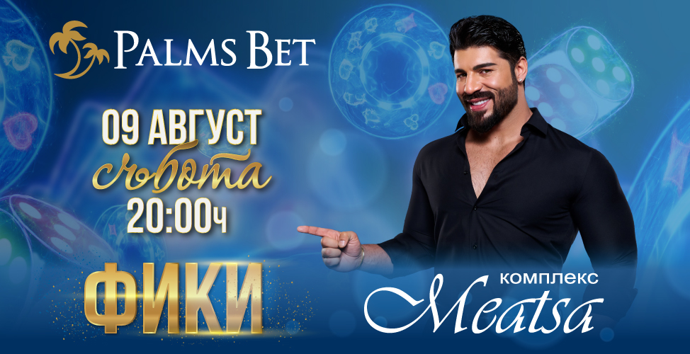 📅 На 9 август (петък), точно в 20:00 ч., игралната зала на Palms Bet в Кърджали ще се превърне в сцена за незабравима вечер с Фики Стораро – един от най-популярните и обичани изпълнители на българската музикална сцена! 🌟