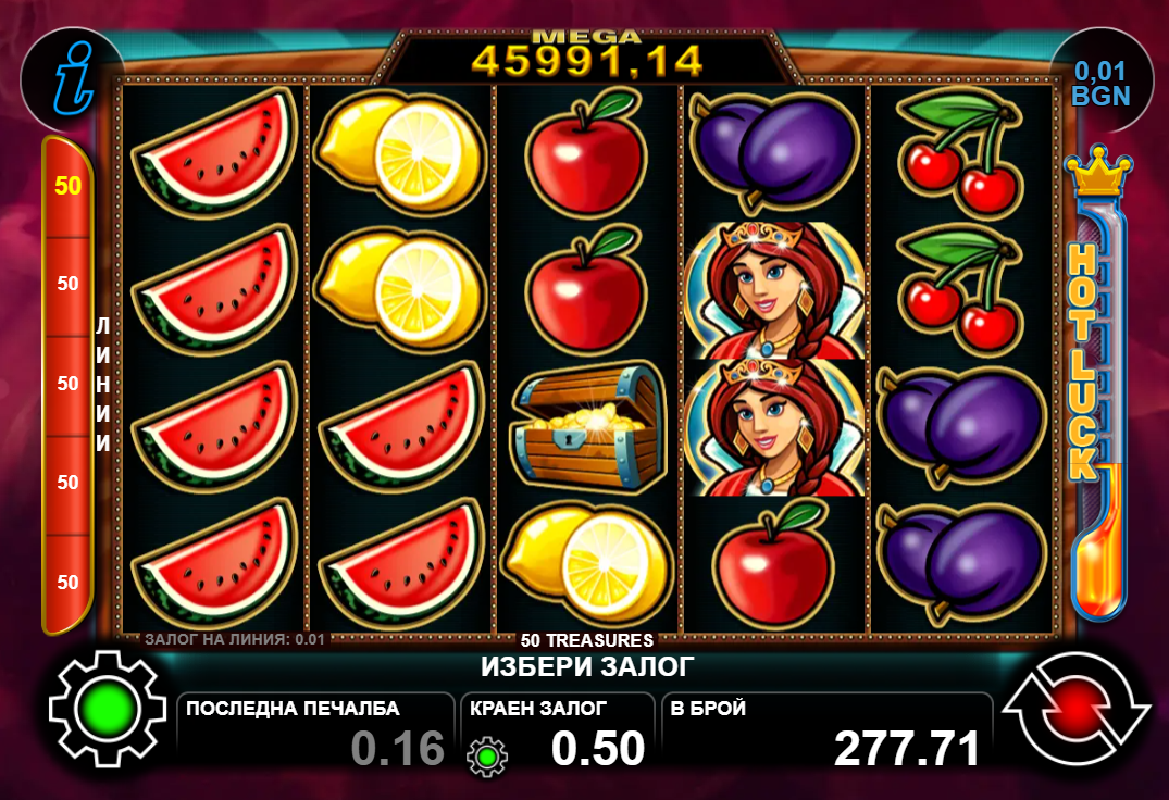 Hot Luck джакпотът падна в едно от най-популярните заглавия на доставчика – 50 Treasures.