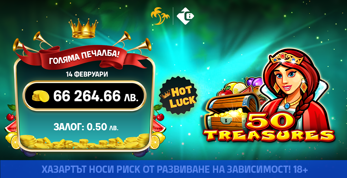 🔥 Hot Luck джакпотът падна за втори път в рамките на само една седмица в онлайн казиното на Palms Bet. Сумата от 66 264.66 лв. бе спечелена след залог от едва 0.50 лв.! 💸