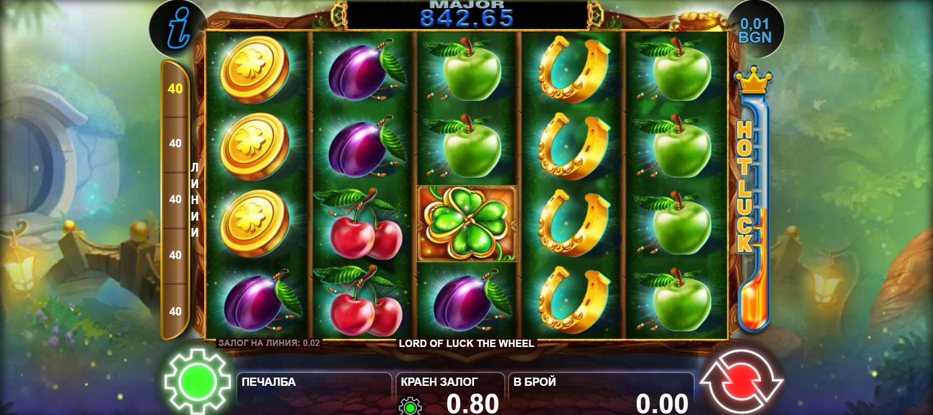 🎰 Печалбата дойде с едно от добре познатите заглавия на CT Interactive – 🍀Lord of Luck The Wheel🍀! Играта предлага уникални възможности за печалба, благодарение на своите 5 въртящи се барабана, 40 линии на изплащане, както и специалното Бонус Колело на Късмета, с което залогът ти може да бъде умножен по 20! С него могат да бъдат трупани и допълнителни бонус печалби в скъпоценното Златно гърне на Леприкона!