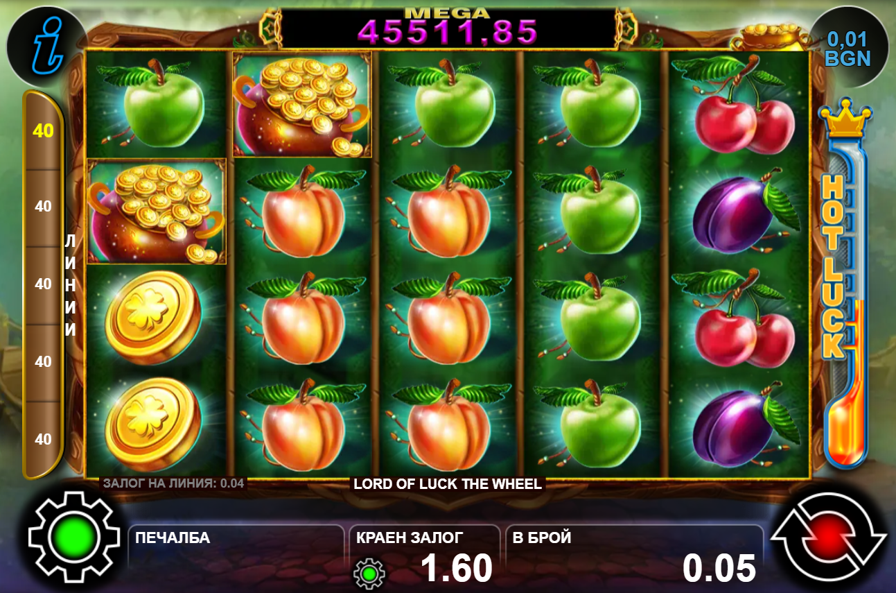 🎰 Играта, която доведе до топ печалбата, е Lord of Luck The Wheel от CT Interactive! Вълнуващото заглавие носи със себе си уникални възможности за печалба, благодарение на своите 5 въртящи се барабана и 40 линии на изплащане.