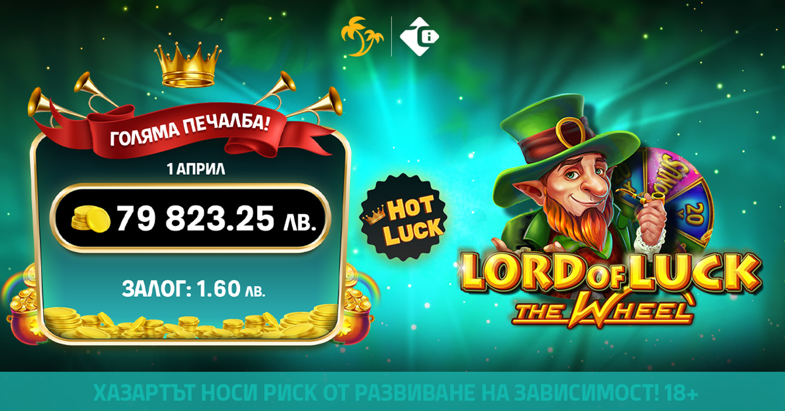 🌴 На 1 април играч в онлайн казиното на Palms Bet успя да спечели уникалния Hot Luck Jackpot! Сумата от 79 823.25 лв. падна след залог от едва 1.60 лв.! 💸