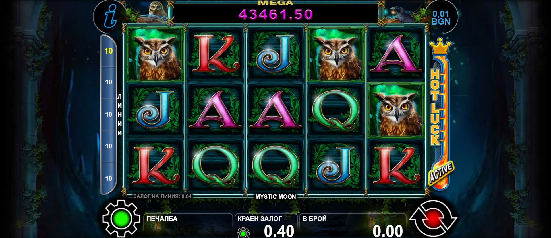 🎰 Печалбата дойде с мистичната слот игра Mystic Moon – заглавие, което ще те потопи в свят, обгърнат от лунна светлина, древна магия и тайнствени символи! Играта се отличава със завладяваща атмосфера и уникален дизайн, които засилват усещането за мистика и вълшебство. Mystic Moon предлага разнообразни бонус функции, включително Wild символи, безплатни завъртания и специални множители, които могат да превърнат всяко завъртане в истинска магическа печалба.