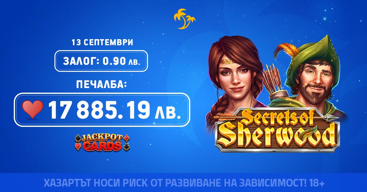 🎯 Успехът бе постигнат на магическата слот игра Secrets of Sherwood от Amusnet, като беше свалено ниво Купа на Jackpot Cards.