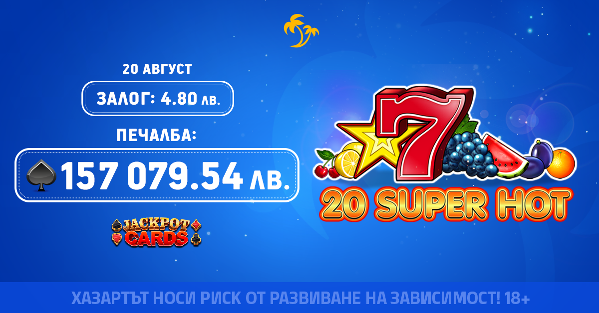 🎯 Ударът дойде при игра на добре познатата 20 Super Hot на Amusnet, като решаваща роля изигра прогресивният джакпот Jackpot Cards – Пика.