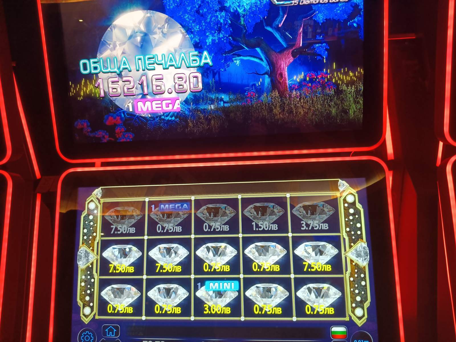 🍀 На 25 юни играч в залата на Palms Bet в Града под тепетата улучи мега джакпота King Diamond 4, при залог от едва 0.75 лв., и си тръгна с впечатляващата сума от 16 216 лв.!