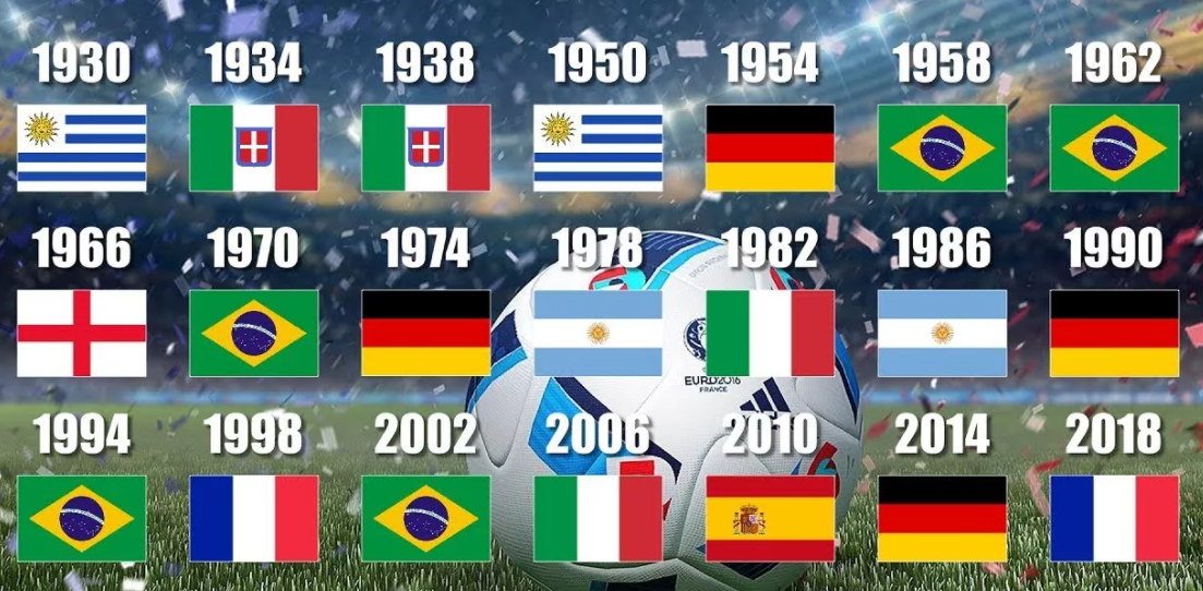 Футболът е най-гледаният и популярен отборен спорт днес, а както знаем, през четири години се провежда и световно първенство, в което участват различни държави от цял свят. В статията ще разгледаме малко обща информация около първенството по футбол и държавите, които са го печелили от неговото начало.
