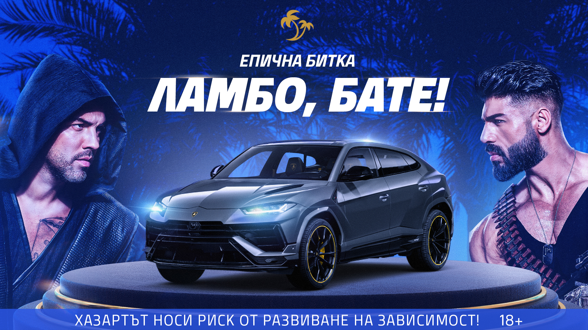 Играта „Ламбо, бате“ ще приключи на 23.12.2024 г. Тегленето за наградата ще бъде на живо във Facebook страницата на Palms Bet, както и в официалния канал в YouTube, като ще присъства нотариус с генератор на случайни числа.