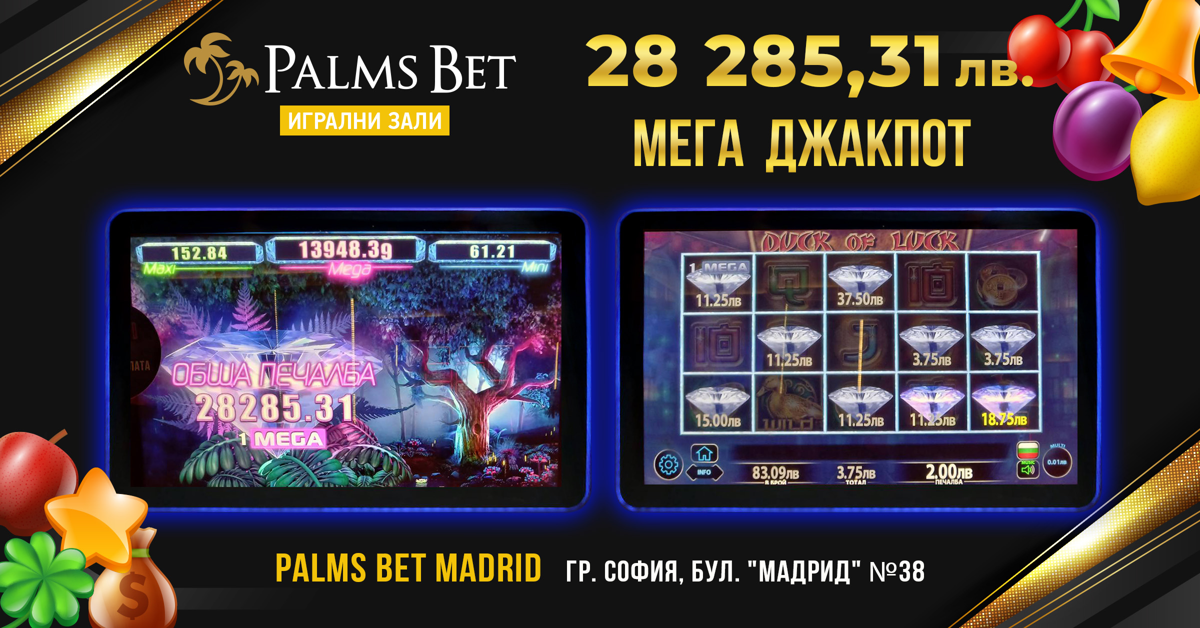 💸 Печалбата стана факт в Palms Bet игрална зала в сърцето на София – на бул. „Мадрид“, в непосредствена близост до парк „Заимов“ и мол „Сердика“.