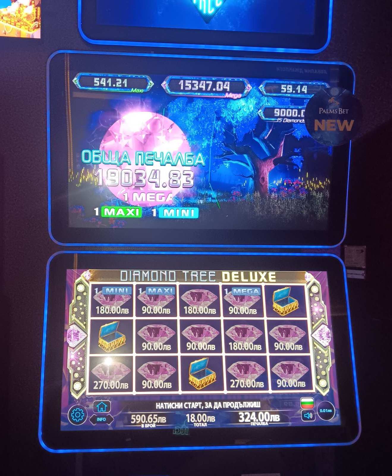 📅 На 22 юли (вторник) късметът се усмихна на наш играч в зала Palms Bet – Мол Варна, който спечели впечатляващите 16 436,19 лева от Mega + Maxi + Mini Jackpot на Diamond King 4, само срещу залог от 18 лева! 🍀