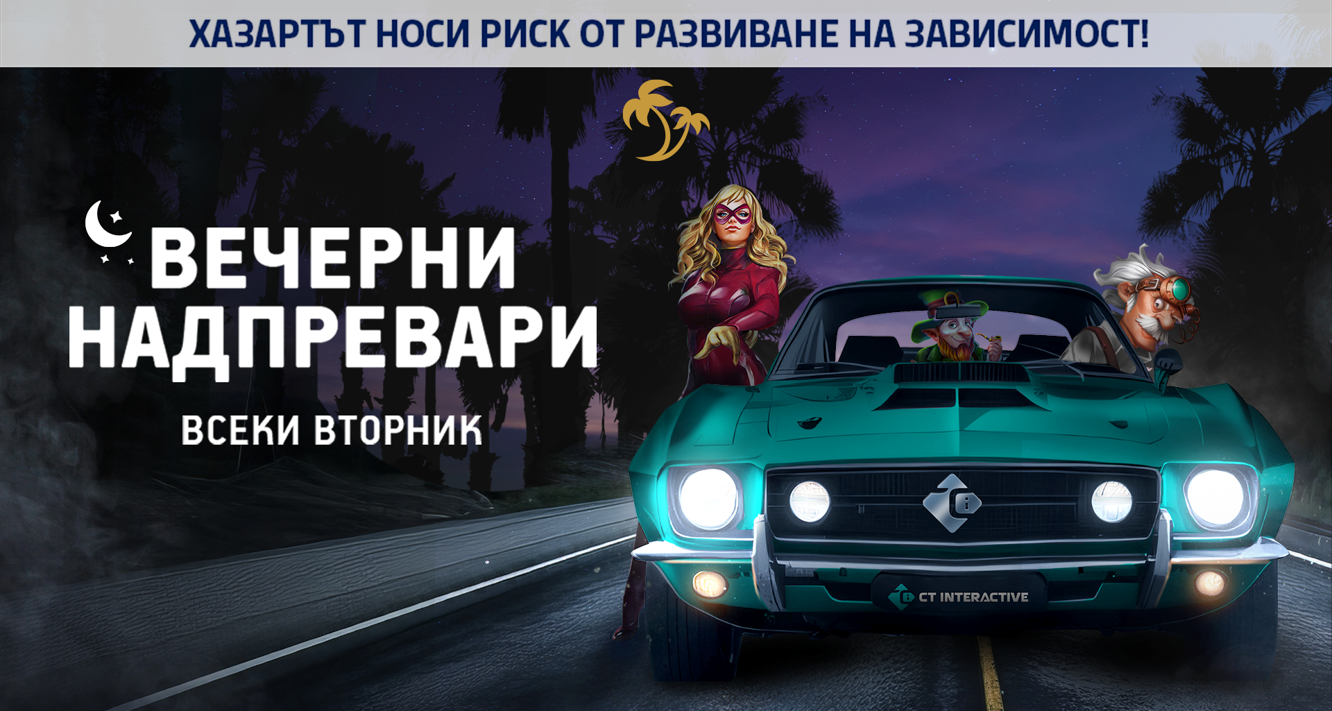 „Вечерни надпревари на всеки час с игрите на CT Interactive“ е игра, която се провежда всеки вторник и е под формата на рундове. В нея може да участва всеки регистриран потребител, който няма наложен лимит в секция „Казино“.