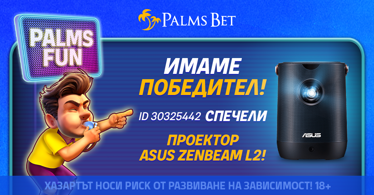 🌴 На 23 юни Palms Bet проведе първото теглене за спечелване на новата голяма награда от Palms Fun – проектор Asus LED ZenBeam!