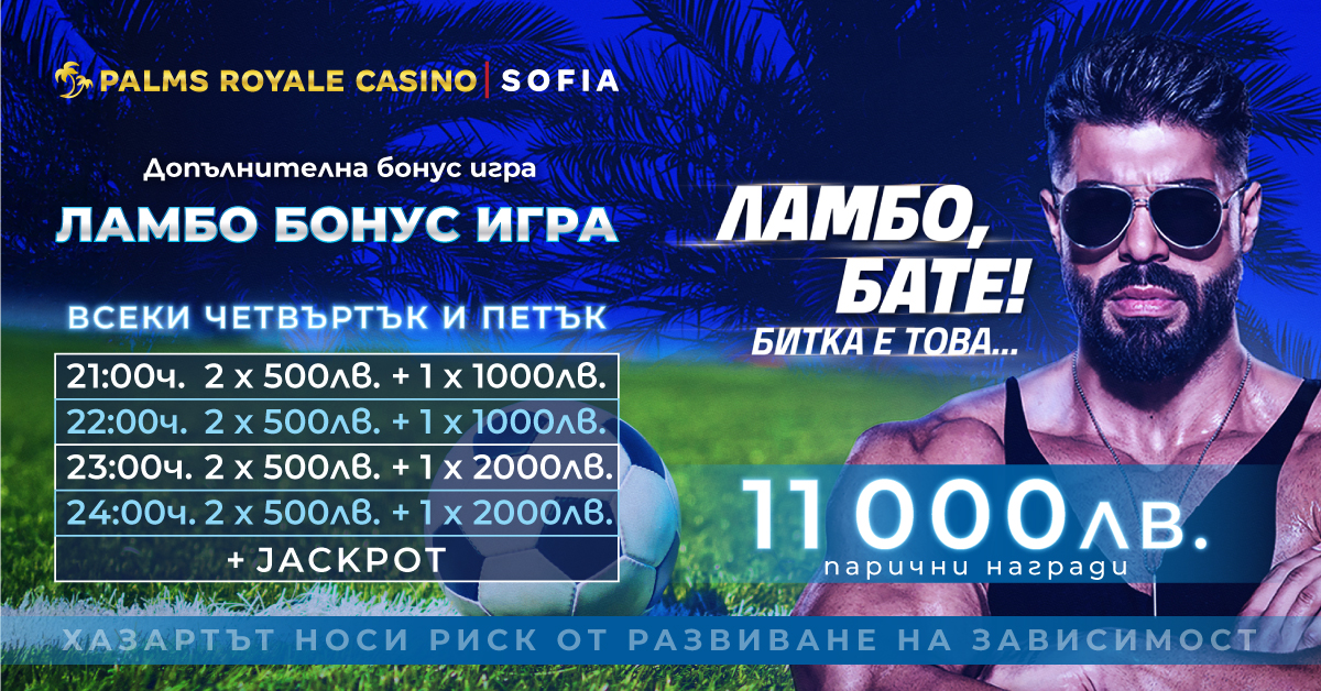 🚀 Освен невероятните музикални вечери, в казиното ви очаква и специална промоция с награден фонд от 11 000 лв. – Ламбо Бонус Игра! Всеки четвъртък и петък имате шанс да спечелите страхотни парични награди в следните часове: