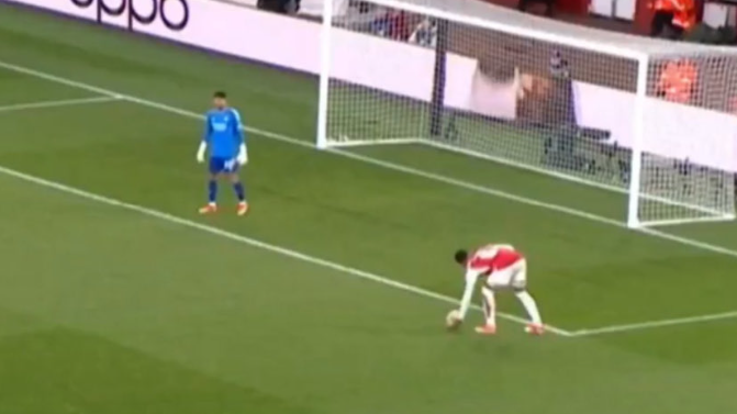 Давид Рая постави топката и подаде топката на Габриел Магаляеш. Бранителят на „топчиите“ обаче реши, че ще хване топката и ще я заложи, за да изпълни удара наново. Вижте ситуацията: