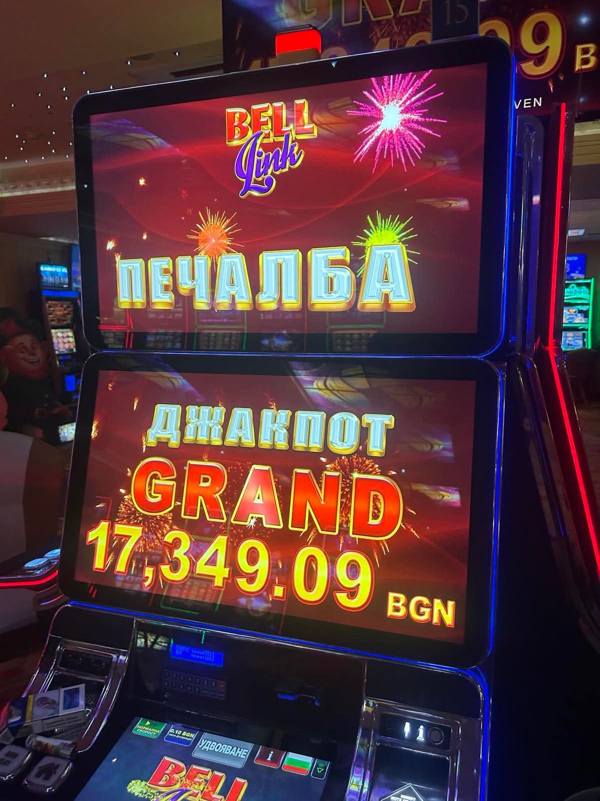 🎉 На 21 юли (понеделник) един от нашите играчи в зала Palms Bet, разположена в сърцето на Плевен, направи залог от 25 лева и спечели впечатляващата сума от 17 349 лева, след като уцели Grand Jackpot Bell Link!