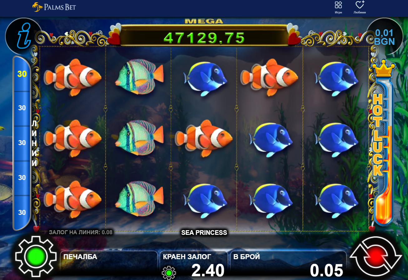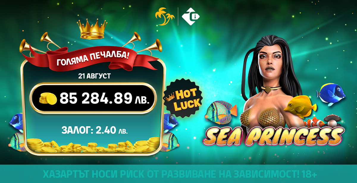 🎉 На 21 август късметът отново се усмихна широко на един от играчите в онлайн казиното на Palms Bet! Само със залог от 2.40 лв. в играта Sea Princess на CT Interactive, той успя да грабне впечатляващата печалба от 85 284.89 лв.