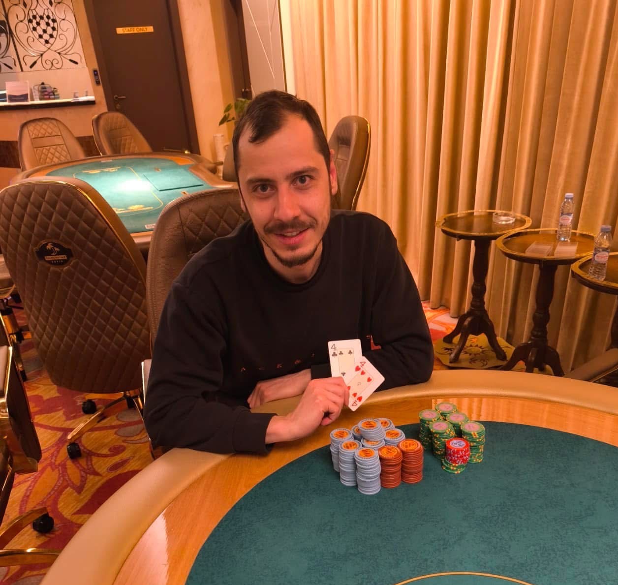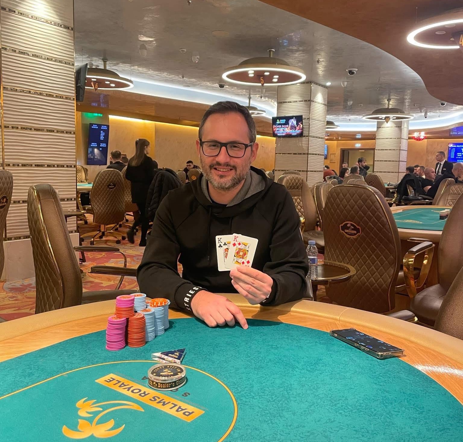 Той надделя над Борислав Йосифов в оспорван двубой за титлата и първото място в The Royal Palm. В крайна сметка двамата сключиха сделка на Heads-up.