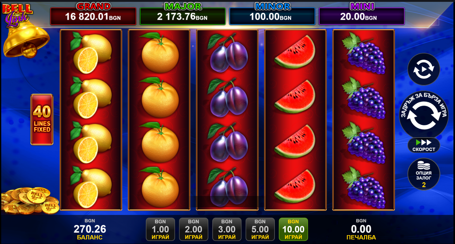 🎯 Третата джакпот печалба, при която залог от 10 лв. се превърна в 10 139.95 лв., дойде от друго добре познато заглавие от EGT Digital – 40 Lucky Kind Extreme Bell Link.