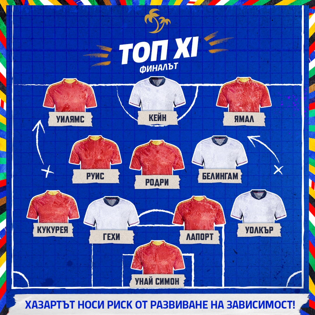Време е за финал! Испания и Англия излизат един срещу друг в битката на годината. Ние от Palms News сглобихме обща единайсеторка, при това обосновано. Приятно четене!